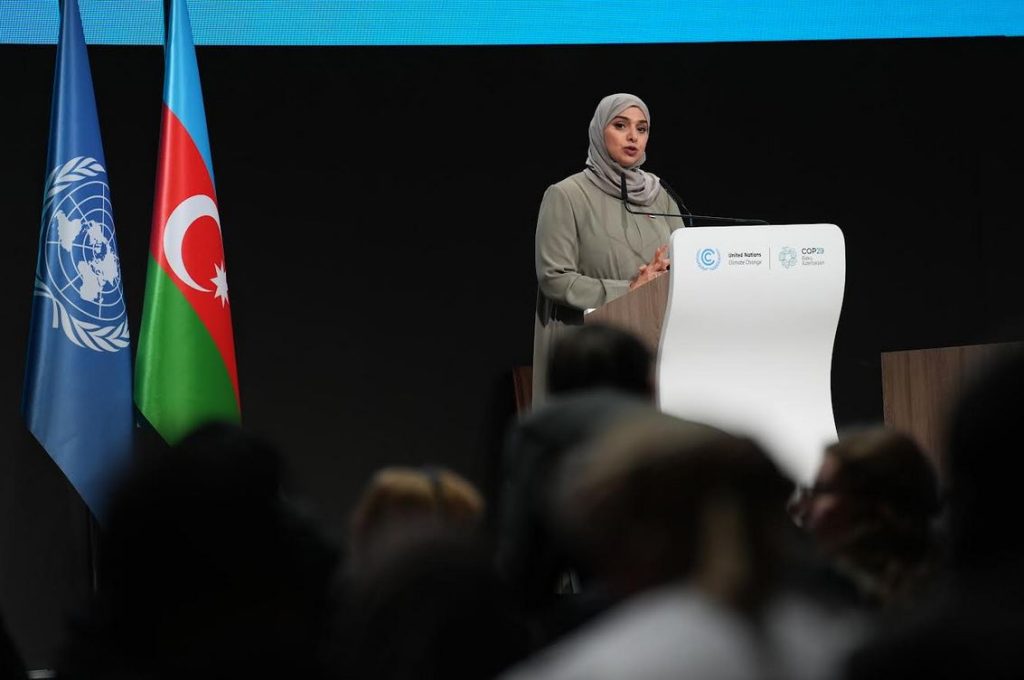 ألقت وزيرة التغير المناخي والبيئة الدكتورة آمنة بنت عبدالله الضحاك، كلمة دولة الإمارات العربية المتحدة في الدورة التاسعة والعشرين لمؤتمر الأطراف (COP29) والمنعقدة في العاصمة الأذربيجانية باكو، مؤكدة التزام الدولة بالعمل الجماعي متعدد الأطراف وضمان الشمولية لتحقيق أهداف العالم المناخية.
