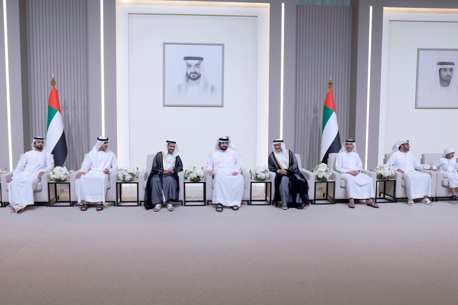 حضر سمو الشيخ أحمد بن محمد بن راشد آل مكتوم، النائب الثاني لحاكم دبي، يرافقه سمو الشيخ محمد بن راشد بن محمد بن راشد آل مكتوم، حفل الاستقبال الذي أقامه معالي حميد محمد القطامي في دبي، بمناسبة زفاف نجله محمد، على كريمة راشد محمد بو غانم السويدي.