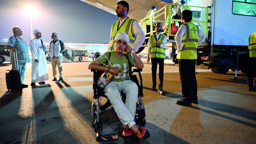 وصلت إلى الإمارات، أمس، الدفعة الـ16 من الأطفال الفلسطينيين الجرحى ومرضى السرطان، وهي تضم 25 طفلاً ممن يحتاجون إلى العلاج والرعاية الطبية، إضافة إلى 51 مرافقاً لهم من عائلاتهم.