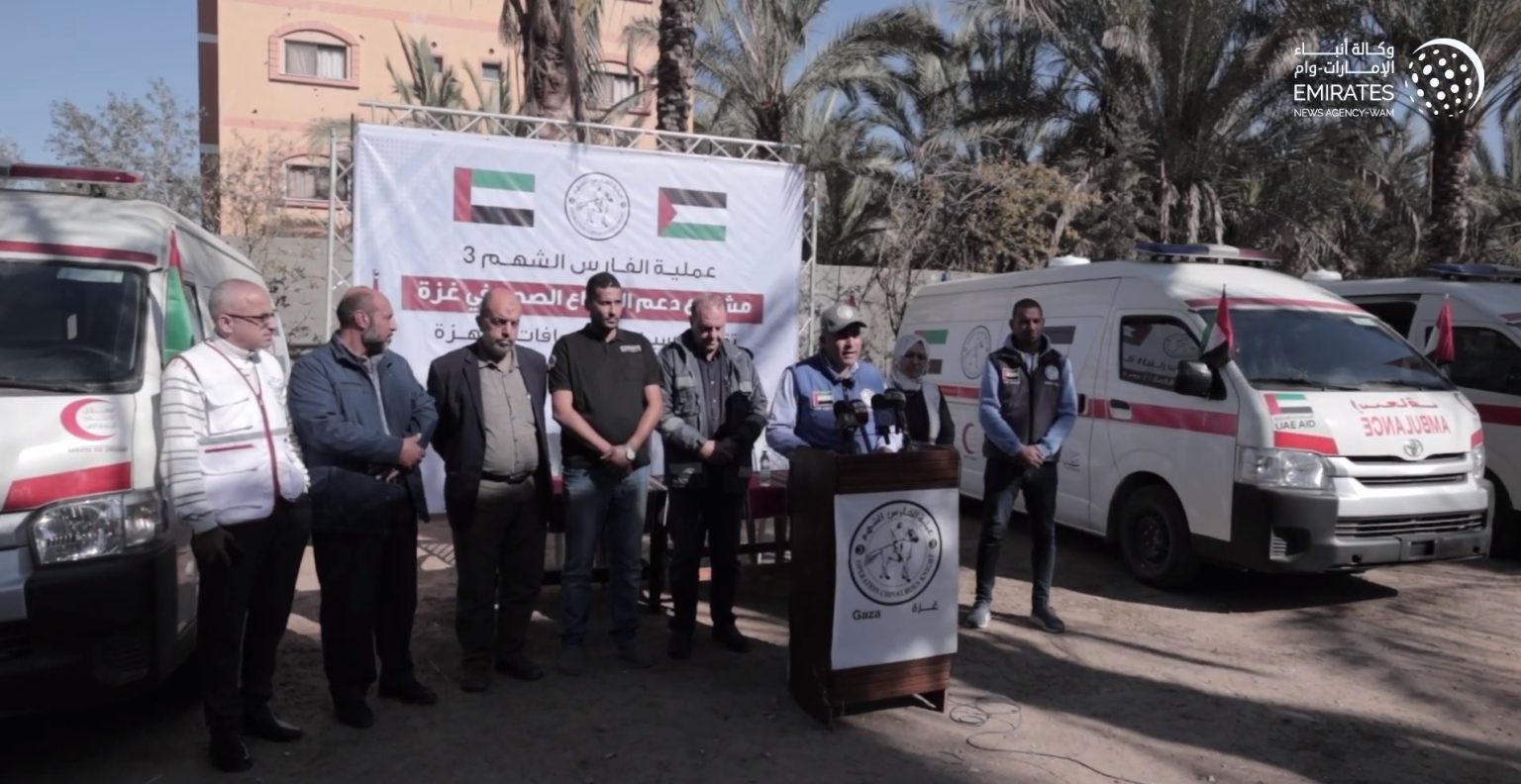 استمرارً لجهودها الإنسانية، قدمت عملية “الفارس الشهم 3” الإماراتية دفعة جديدة من سيارات الإسعاف الحديثة والمُجهزة إلى مستشفيات قطاع غزة، لدعم القطاع الصحي الذي يعاني من ضغط كبير جراء الأوضاع الإنسانية الراهنة والتحديات المتزايدة في تقديم الخدمات الصحية بعد تعطل مئات سيارات الإسعاف.