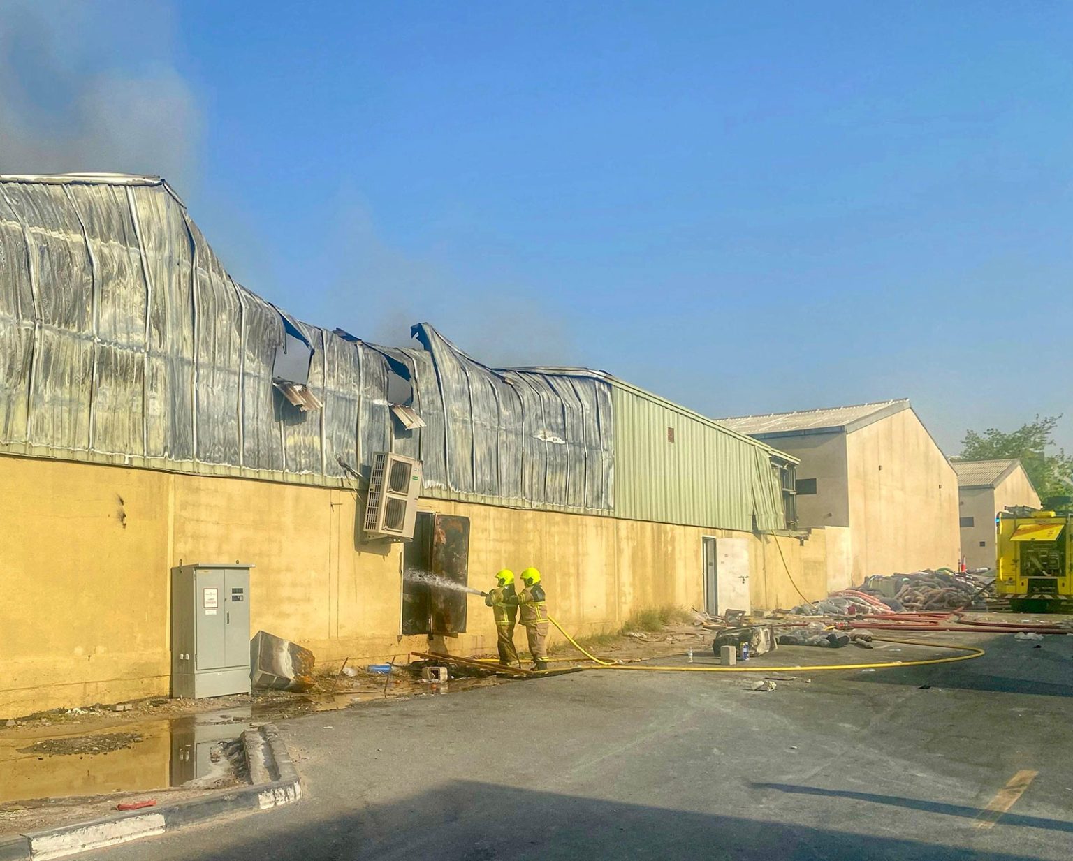وتبين أن الحادث عبارة عن حريق متوسط في مستودع أقمشة وعليه تم تحريك مركز إطفاء الراشدية ومركز اطفاء القوز لتقديم الدعم والاسناد، وباشرت الفرق المتخصصة عمليات الإخلاء ومكافحة الحريق.