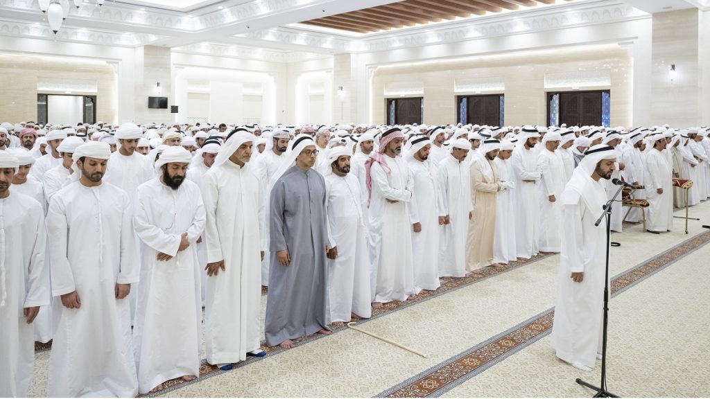 أدى سمو الشيوخ والجموع صلاة الجنازة على جثمان الفقيد حمد بن سهيل الخييلي في مسجد الشيخ هزاع بن سلطان آل نهيان في مدينة العين.