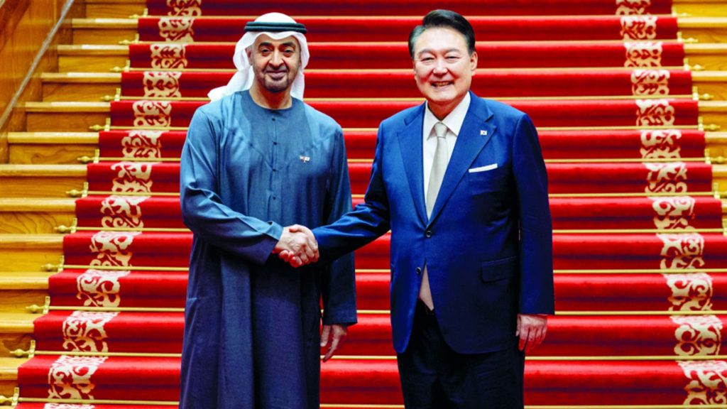 وقال صاحب السمو الشيخ محمد بن زايد آل نهيان، في منشور على حسابه في منصة «إكس»، أمس: «وصلت (اليوم) إلى سيؤول، للقاء فخامة الرئيس يون سوك يول وبحث سبل تطوير الشراكة الاستراتيجية الخاصة بين الإمارات وكوريا، وتعزيز التعاون الاقتصادي بما يتماشى مع رؤانا المشتركة بشأن مستقبل التنمية واستدامتها في بلدينا. العلاقات الإماراتية الكورية نموذج متميز للعلاقات الإيجابية والبنّاءة، والإمارات حريصة على توسيع آفاقها بما يعود بالخير والنماء على البلدين والشعبين الصديقين».