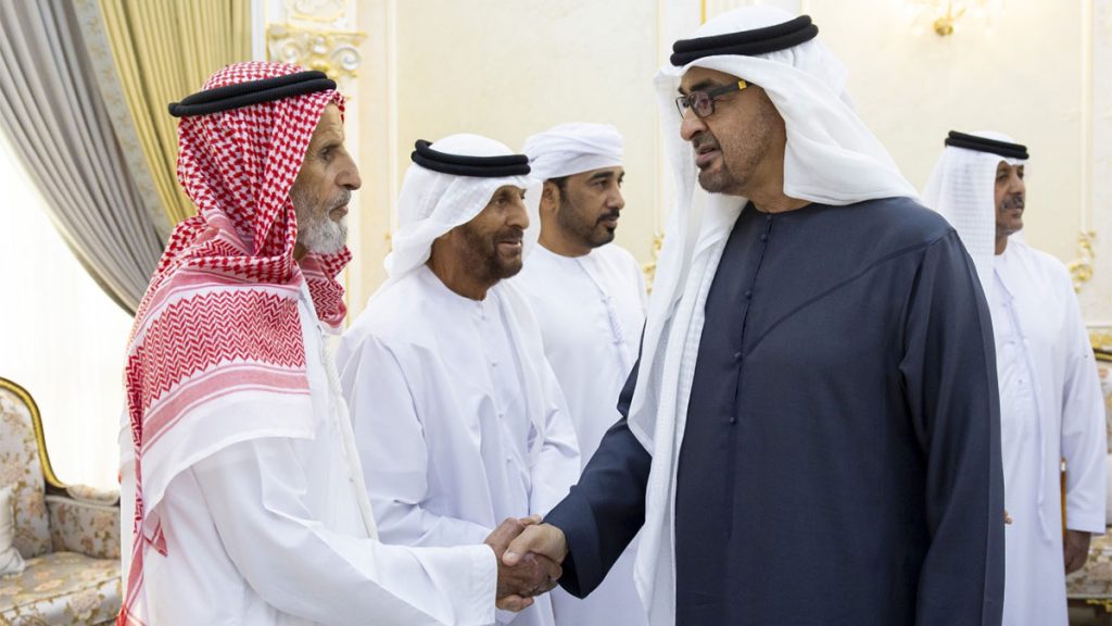 قدّم صاحب السمو الشيخ محمد بن زايد آل نهيان، رئيس الدولة، حفظه الله، أمس، واجب العزاء في وفاة المغفور لها هيرة خليفة خميس الخييلي، والدة وكيل وزارة الداخلية، اللواء الركن خليفة حارب الخييلي، وذلك خلال زيارة سموه مجلس العزاء في مدينة العين.