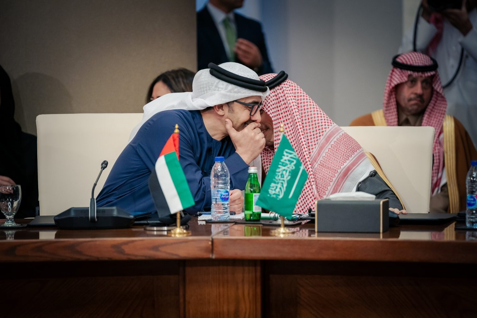 وشارك في الاجتماع، صاحب السمو الأمير فيصل بن فرحان بن عبدالله وزير الخارجية في المملكة العربية السعودية الشقيقة، ومعالي الشيخ محمد بن عبد الرحمن بن جاسم آل ثاني رئيس مجلس الوزراء وزير خارجية دولة قطر الشقيقة، ومعالي أيمن الصفدي نائب رئيس الوزراء ووزير الخارجية وشؤون المغتربين في المملكة الأردنية الهاشمية الشقيقة، ومعالي فؤاد حسين نائب رئيس مجلس الوزراء وزير الخارجية في دولة العراق الشقيقة، ومعالي عبدالله بو حبيب وزير الخارجية في الجمهورية اللبنانية الشقيقة، ومعالي الدكتور بدر عبدالعاطي وزير الخارجية والهجرة في جمهورية مصر العربية الشقيقة.