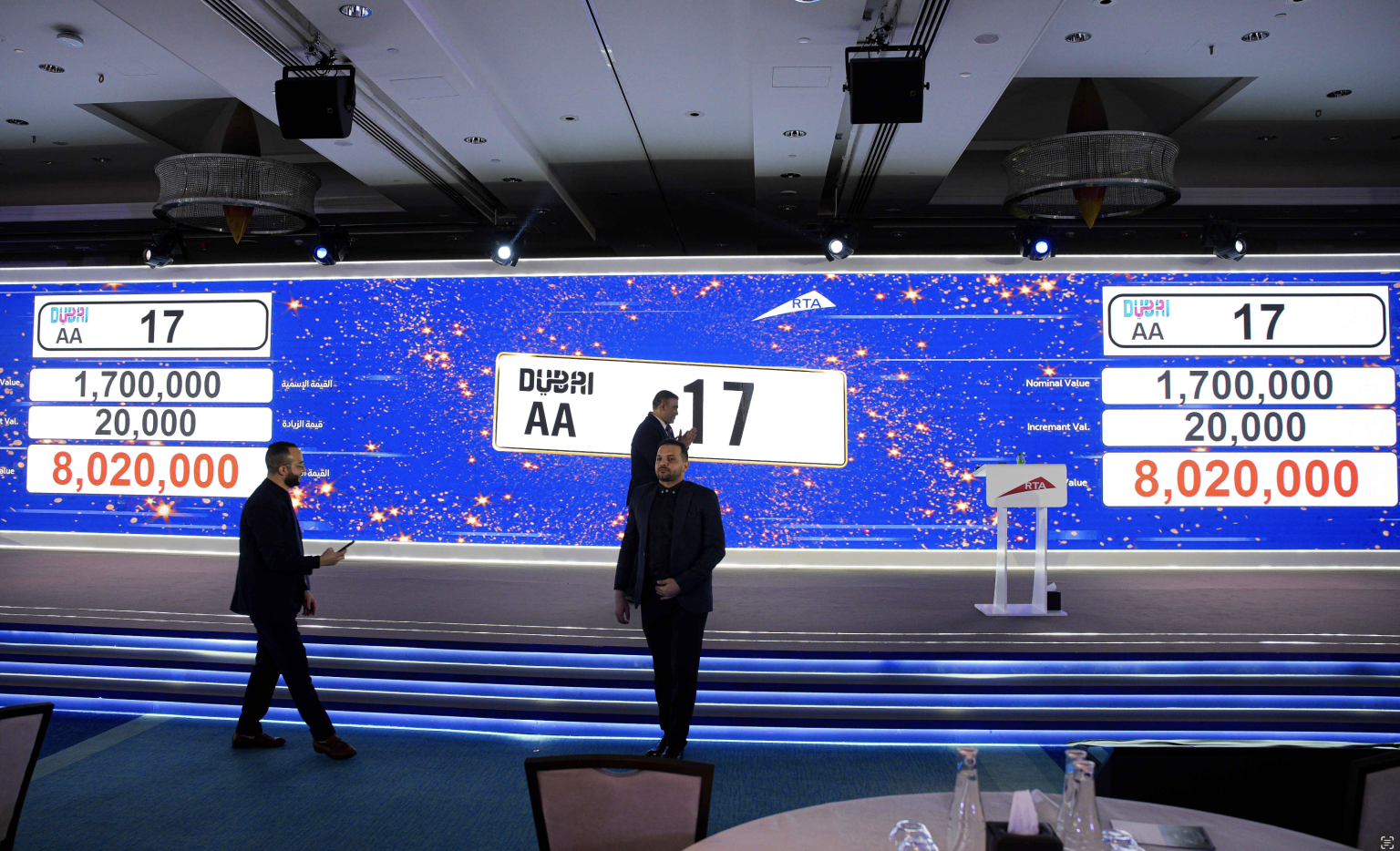 وحقق الرقم (AA17) القيمة السعرية الأعلى، إذ بِيعَ هذا الرقم بـ(8) ملايين و(20) ألف درهم، تلاه الرقم (Y1000) بـ (4) ملايين و(550) ألف درهم والرقم (V96) بـ (4) ملايين و(100) ألف درهم والرقم (AA333)، الذي بِيعَ بـ (3) ملايين و(10) آلاف درهم.