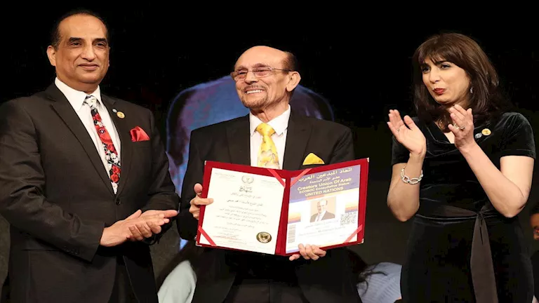 وترأس وفد اتحادي المبدعين والإعلاميين العرب الدكتور أحمد نور، وشارك في التكريم كل من: الدكتورة نرمين سليم أمين عام اتحاد المبدعين العرب ومندوبه الدائم لدى الأمم المتحدة، الدكتورة هالة عدلي حسين أمين المرأة بالاتحاد، الأستاذ أحمد عبد الرحمن الأمين العام المساعد لاتحاد الإعلاميين العرب، الأستاذ جاسم السميط مستشار رئيس الاتحاد بدولة الكويت.
