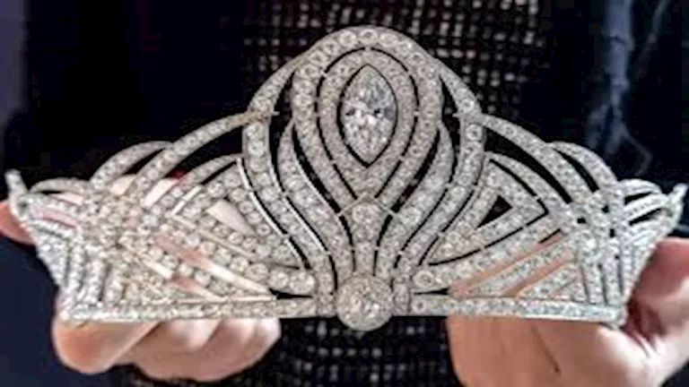 ارتدت جابرييلا لاسيردا فستانا أزرق مزينا بزخارف ذهبية مع عباءة متناسقة، واستبدلت التاج بغطاء رأس ذهبي.