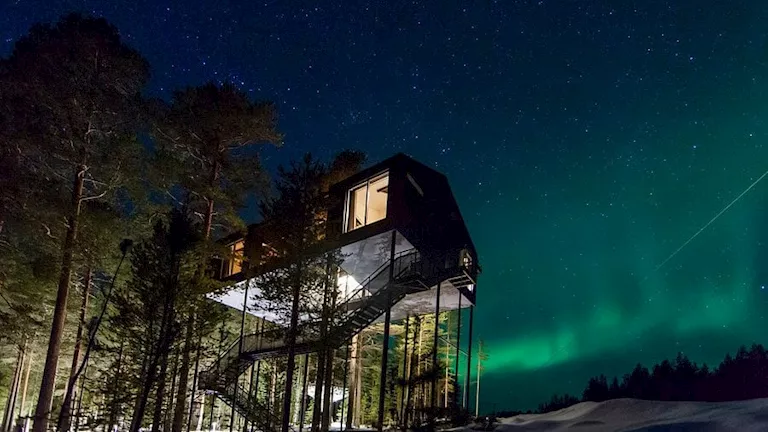 فندق يصعد بك إلى قمم الأشجار غرف معلقة بين أغصان أشجار الصنوبر، تصميمات معمارية فريدة تلعب بين الشفافية والتعرّف على الطبيعة.