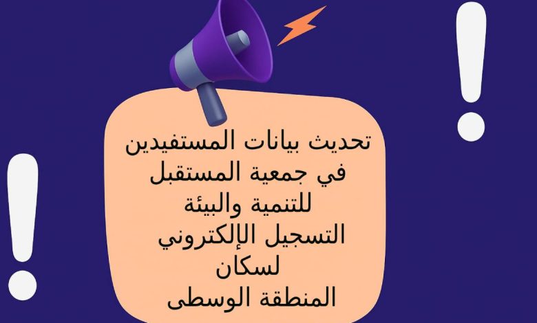 تحديث بيانات المستفيدين في جمعية المستقبل للتنمية والبيئة – التسجيل الإلكتروني لسكان المنطقة الوسطى (من هنا)