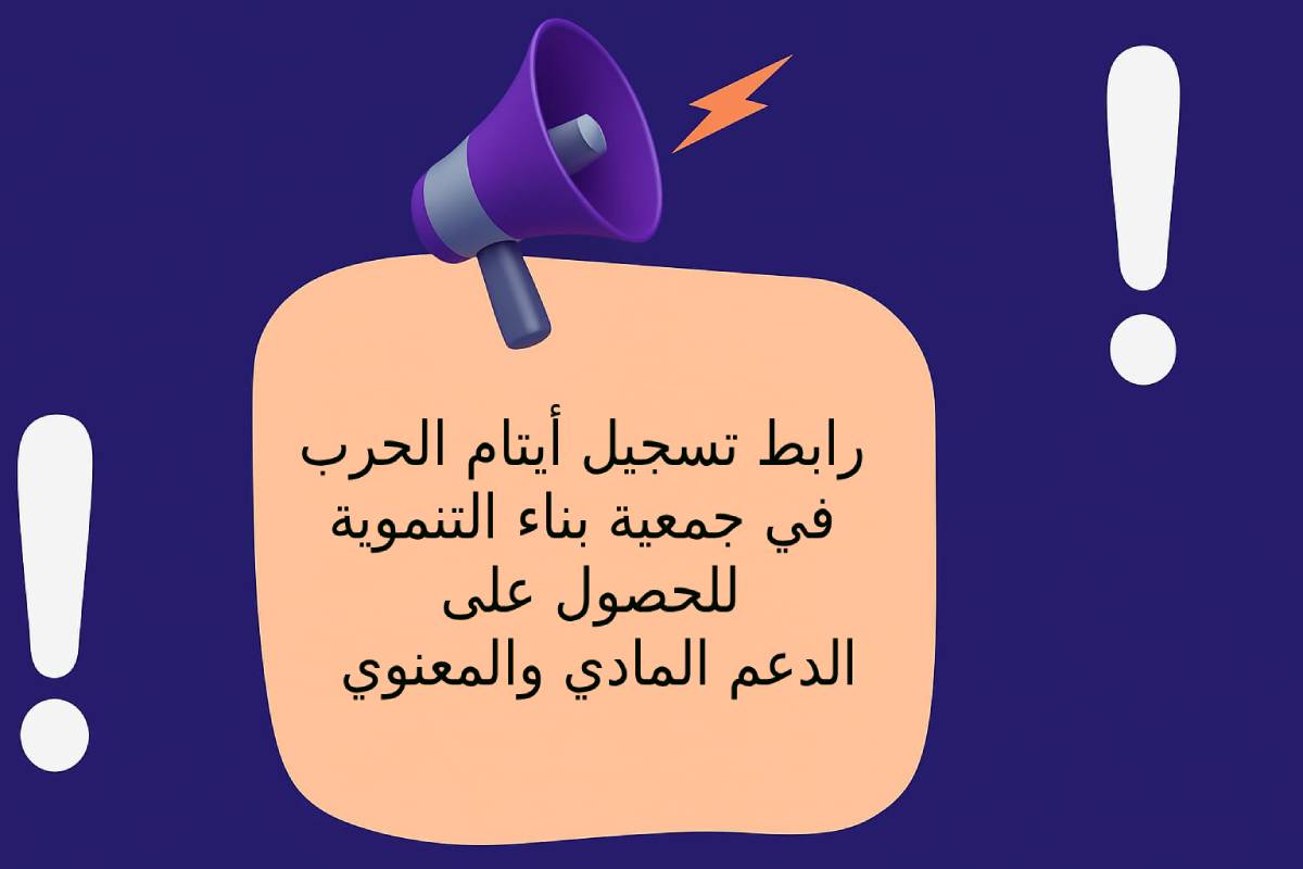 رابط تسجيل أيتام الحرب في جمعية بناء التنموية للحصول على الدعم المادي والمعنوي (من هنا)