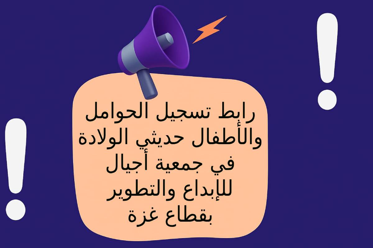 رابط تسجيل الحوامل والأطفال حديثي الولادة في جمعية أجيال للإبداع والتطوير بقطاع غزة (من هنا)