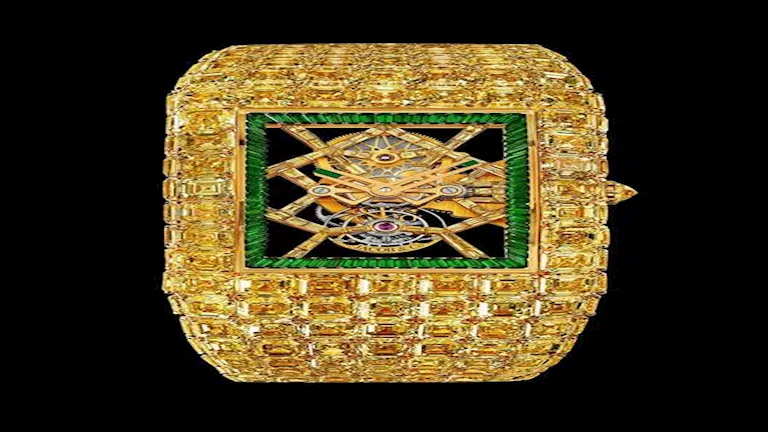 كما أن تصميم الساعة من الذهب الأصفر الخالص وسوارها المرصع بالأحجار يبرزان براعة الحرفيين الذين أمضوا آلاف الساعات في صقل وتثبيت كل ماسة يدويًا لتحقيق التناسق الكامل بين القطع.