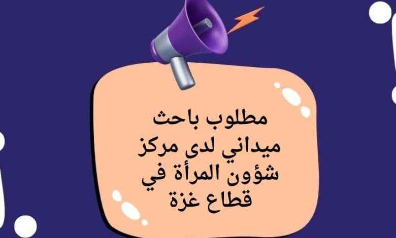 يعلن مركز شؤون المرأة في غزة بالتعاون مع برنامج الأمم المتحدة الإنمائي UNDP / برنامج مساعدة الشعب الفلسطيني (PAPP)، عن توفر 10 وظائف مؤقتة بمسمى مراقب/ة ميداني/ة، للعمل ضمن برنامج الصلادة الاقتصادية لتسهيل الحصول على الفرص الوظيفية اللائقة في قطاع غزة، ضمن مشاريع التشغيل المؤقت، الذي يستهدف قطاع التعليم.