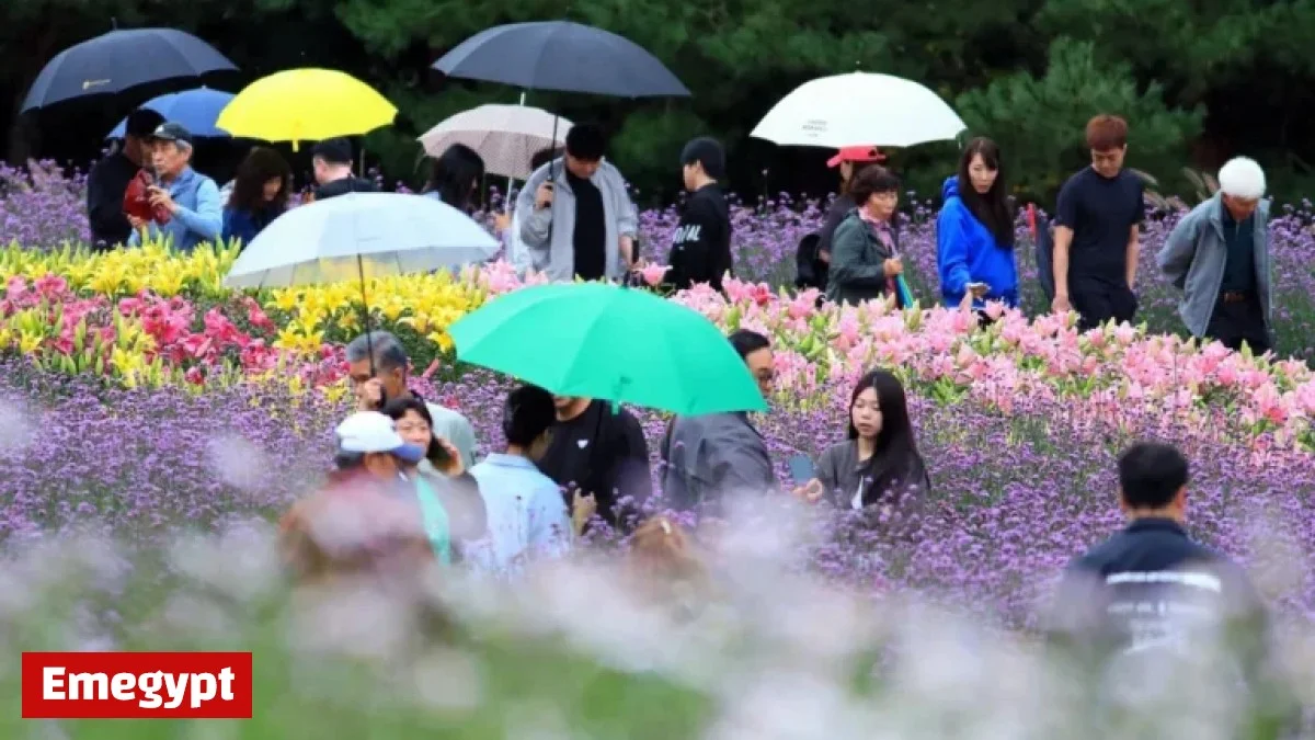 Tourists visiting the beautiful autumn flower festival in Inje, Gangwon Province, stroll through the scenic grounds adorned with blooming flowers, umbrellas in hand as gentle rains continue. The event on October 7, drawing enthusiasts from various regions, encapsulates the essence of autumn despite the lingering rain from the extended Chuseok holidays.