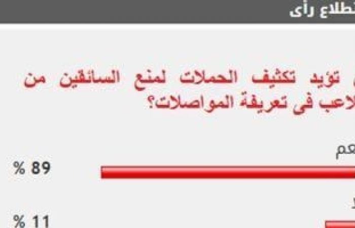 وأيد 89% من القراء مطالب تكثيف الحملات لمنع السائقين من التلاعب فى تعريفة المواصلات، بينما رفض 11% مطالب تكثيف الحملات لمنع السائقين من التلاعب فى تعريفة المواصلات.