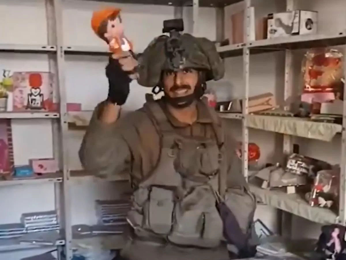 وأظهرت المشاهد سخرية جندي الاحتلال الإسرائيلي من الفلسطينيين أثناء اقتحامه وتخريبه أحد محلات ألعاب الأطفال في مخيم جباليا، والتقاطه تلك الألعاب من على الرفوف وتكسيرها.