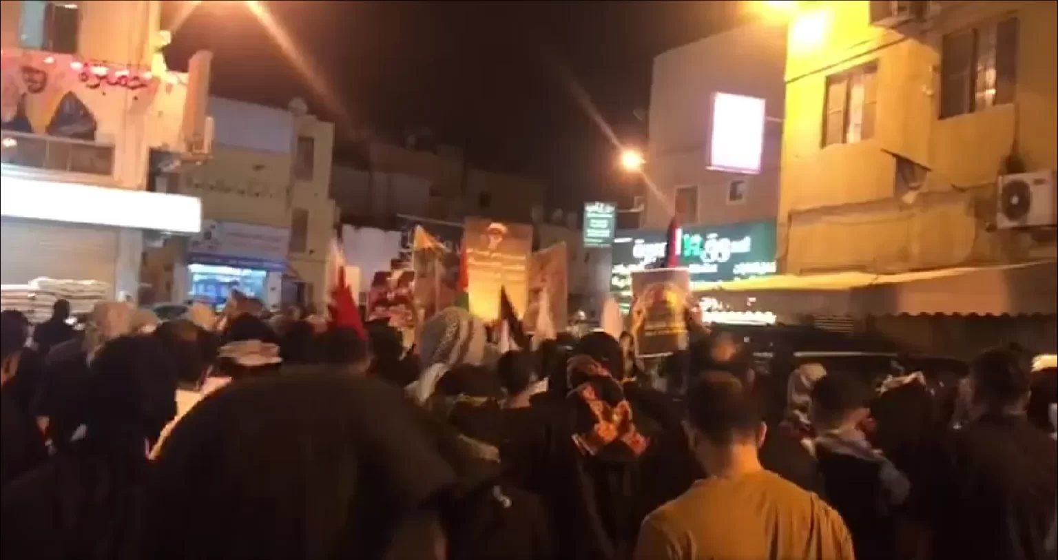 البحرين | انطلاق تظاهرة في البلاد القديم تندد بالجرائم كيان الاحتلال الصهيوني وتطالب بطرد سفير الكيان ايتان نائيه. pic.twitter.com/sUuTLjEVcR