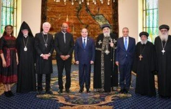 استقبل السيد الرئيس عبد الفتاح السيسي، اليوم، وفد مجلس الكنائس العالمي، برئاسة القس البروفيسور دكتور جيري بيلاي، الأمين العام لمجلس الكنائس العالمي، وبحضور قداسة البابا تواضروس الثاني، بابا الإسكندرية وبطريرك الكرازة المرقسية، والدكتور بدر عبد العاطي وزير الخارجية والهجرة وشئون المصريين في الخارج، وشارك من وفد مجلس الكنائس الأسقف هينرتس بيدفورد استورهم، المنسق العام للمجلس، والمطران فيكن إيكازيان والقس مارلين هيدي ريلي، نائبا المنسق العام للمجلس، ونيافة الأنبا توماس، مطران القوصية ومير وعضو اللجنة المركزية لمجلس الكنائس العالمي، ونيافة الأنبا ابراهام، الأسقف العام في إيبارشية لوس أنجلوس وعضو سكرتارية المجمع المقدس واللجنة المركزية لمجلس الكنائس العالمي.