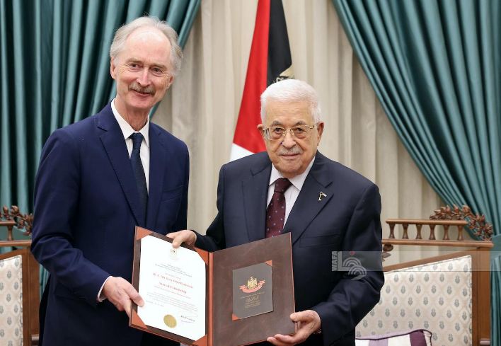 رام الله 20-11-2025 منح رئيس دولة فلسطين محمود عباس، الدبلوماسي النرويجي جاير بدرسون، نجمة الصداقة من وسام الرئيس محمود عباس.