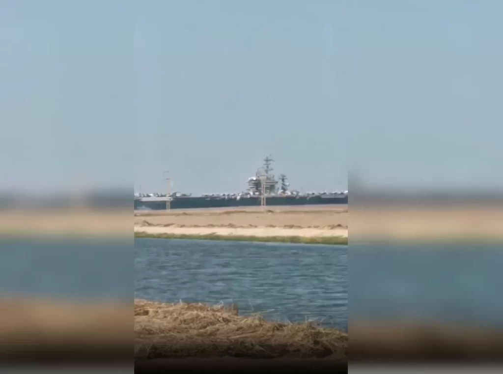 وطن وثق مقطع فيديو تم تداوله على مواقع التواصل الاجتماعي مرور حاملة طائرات من قناة السويس، فيما ذكر متداولوا المقطع أنها حـاملة طائرات أمريكية في طريقها إلى سواحل غزة.