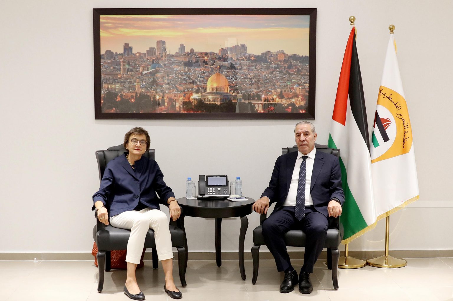 التقى نائب رئيس دولة فلسطين، حسين الشيخ، اليوم الاثنين، مع رئيسة بعثة الممثلية الألمانية أنكة شليم، ورئيس القسم السياسي بالممثلية هندريك أوتي.