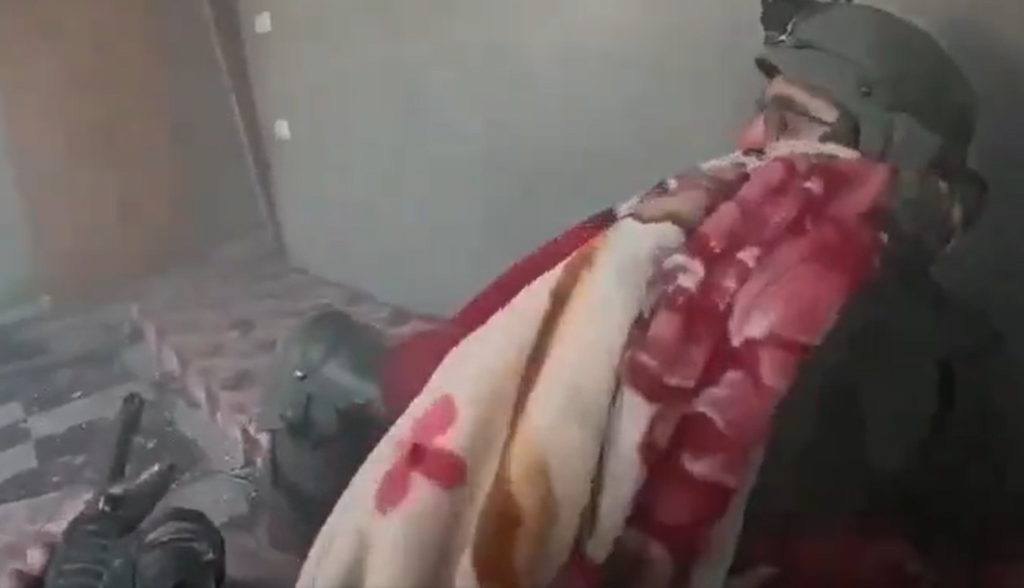 فيما يقوم جندي آخر بسحبه، ويتساقط جنود آخرون صرعى داخل المنزل دون أن يعرفوا مصدر النيران وسط رعب وصراخ هستيري للجنود الإسرائيليين.