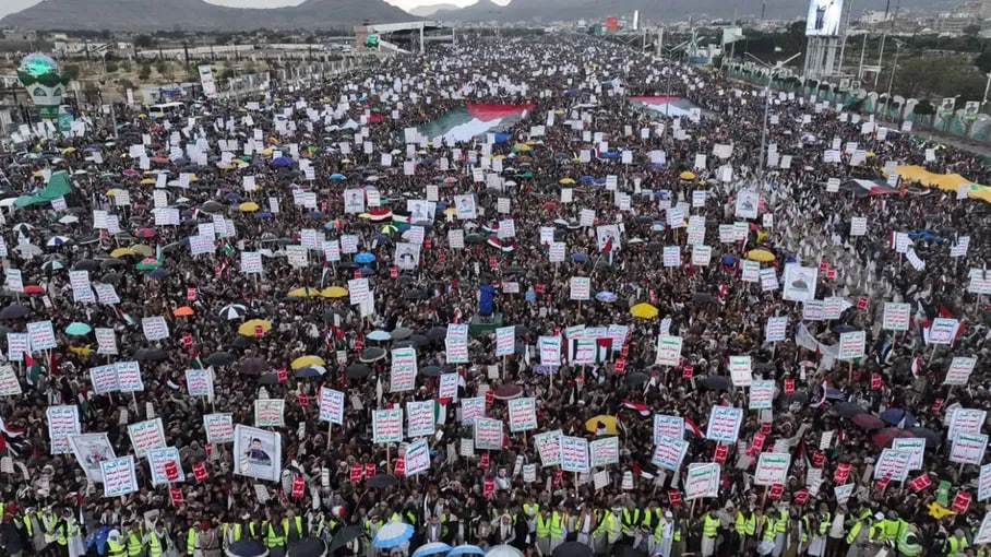 انطلقت مظاهرة حاشدة، الجمعة، في العاصمة اليمنية صنعاء للتنديد بالعدوان الإسرائيلي المتواصل على قطاع غزة، ورفضا للهجمات الأمريكية والبريطانية على مواقع في العديد من المدن في اليمن.