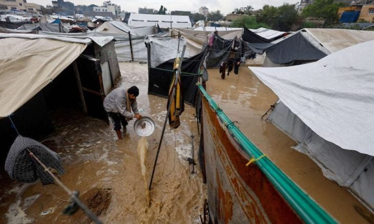 صدى الاعلام_تسببت أمطار غزيرة، مساء الاثنين، في غرق مئات خيام النازحين وتطاير عدد كبير منها، غربي مدينة غزة.