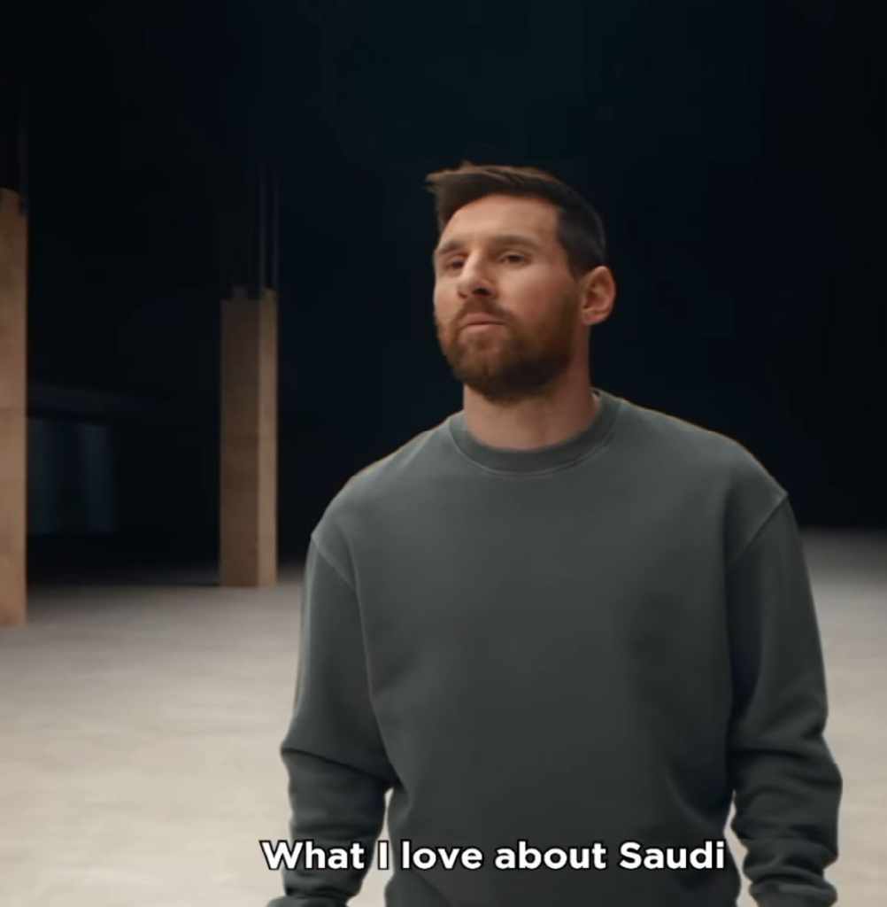إعلان ميسي للسعودية أطلقه عبر حسابه في انستغرام وتداولته حسابات عدة في منصات التواصل. وظهر فيها النجم الأرجنتيني وهو يحطم بركلاته للكرة 4 جدران.