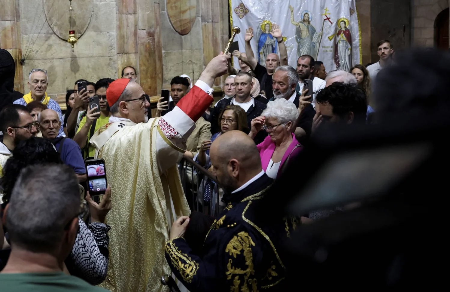وأعرب بطريرك القدس، الكاردينال بييرباتيستا بيتسابالا، في قداس عيد الفصح بكنيسة القيامة في البلدة القديمة بالقدس، عن القلق إزاء احتمال تدهور الوضع السياسي وتفاقم الكارثة الإنسانية في الأراضي الفلسطينية، وصلَّى من أجل السلام والعدل.