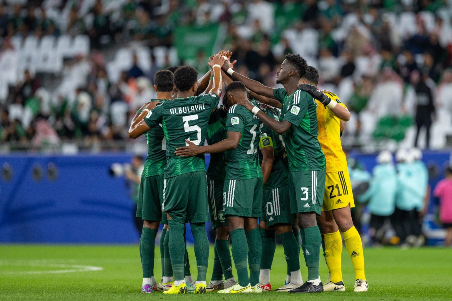 دفاع الأخضر السعودي: حسان تمبكتي، علي العوجامي، علي آل البليهي.