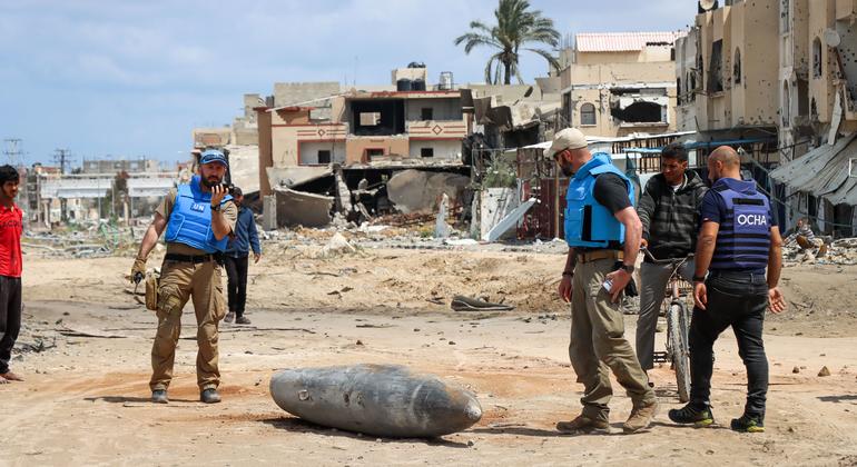 ولفتت إلى أن الأمم المتحدة تقدّر أن 5–10% من الذخائر لم تنفجر، والقيود الإسرائيلية تمنع المسح الشامل.