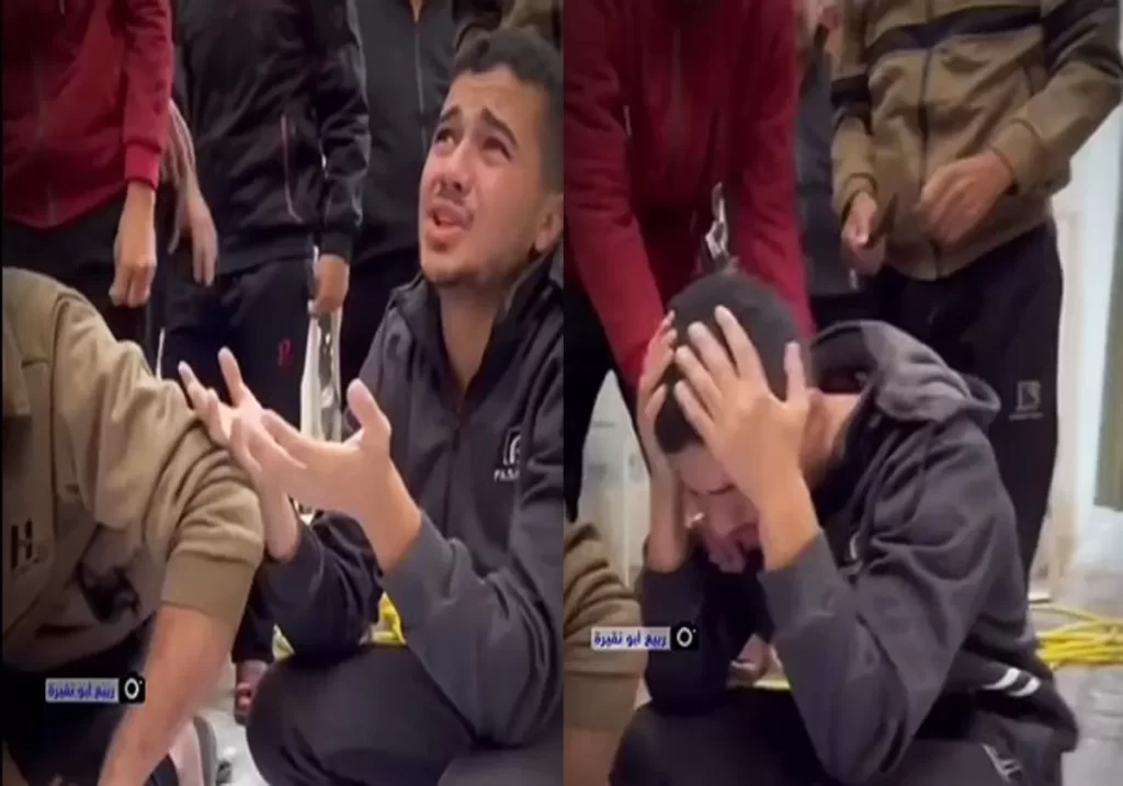 ويظهر في مقطع الفيديو المتداول عبر منصات التواصل الاجتماعي، دموع أب فلسطيني لطفلته الشهيدة بعد ارتقائها في قصف الاحتلال الإسرائيلي على غزة، وهو يقول: ” يمكن عايشة ياعمي.. شوفولنا دكتور”.