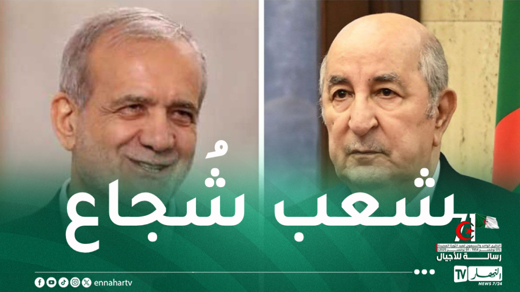 هنأ رئيس الجمهورية الإسلامية الإيرانية، مسعود بزشكيان، رئيس الجمهورية، عبد المجيد تبون، والشعب الجزائري، بمناسبة الذكرى الحادية والسبعين لاندلاع الثورة التحريرية.