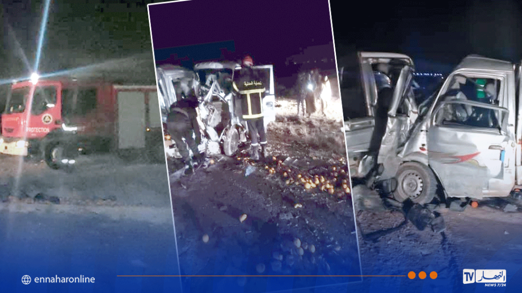 وافاد بيان للحماية المدنية تدخلت وحداتها على الساعة 19سا و50 دقيقة، من أجل حادث اصطدام بين شاحنتين صغيرتين نفعيتين بالمكان المسمى طريق النعايم.