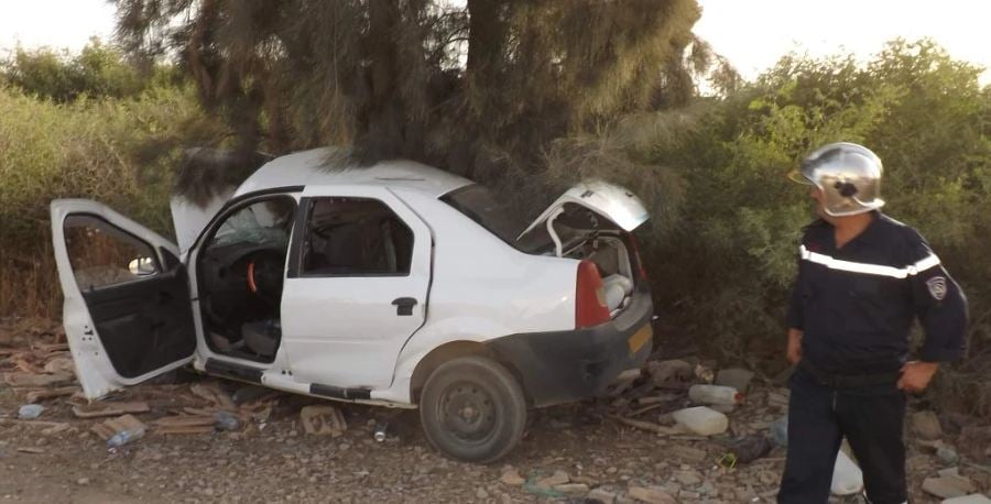 وحسب بيان للحماية المدنية، تدخلت على الساعة 18:50 من أجل حادث انحراف سيارة واصطدامها بشجرة.