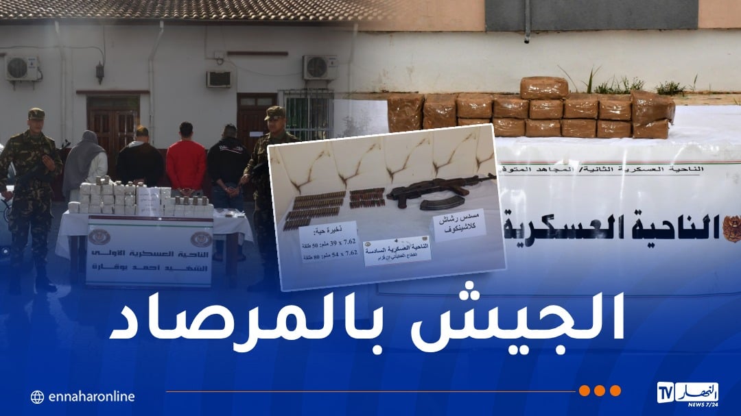 تمكنت وحدات الجيش الشعبي الوطني من توقيف 10 عناصر دعم للجماعات الإرهابية وإحباط محاولات إدخال أكثر من 4 قناطير من الكيف المغربي، وضبط أزيد من مليون قرص مهلوس خلال أسبوع.