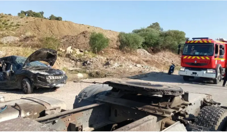 وأوضحت ذات المصالح أنها تدخلت على الساعة 05سا35د لأجل حادث اصطدام بين سيارة وشاحنة. على مستوى الطريق الوطني رقم 48، بالمكان المسمى، بلدية ودائرة الرقيبة.