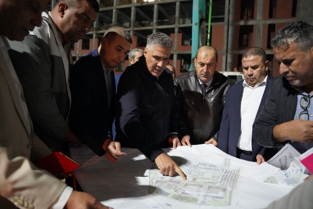 ووقف الوزير على مدى تقدم الأشغال بمختلف أجنحة المشروع، أين سجّل عدم احترام نظام العمل 3×8. وعقب المعاينة، عقد الوزير اجتماعا تنسيقيا ضمّ ممثلين عن الوكالة الوطنية لإنجاز الاستثمارات في مجال التجهيز. مكتب الدراسات المكلف بمتابعة المشروع BEREG، ومؤسسات الإنجاز Consider Construction.