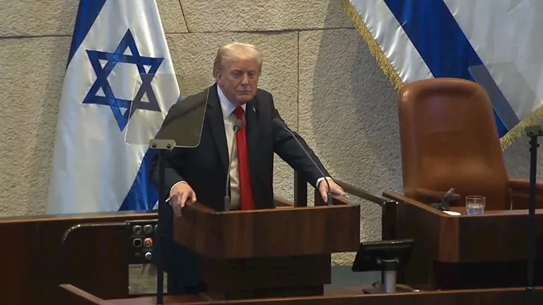 ألقى الرئيس الأمريكي دونالد ترامب، اليوم الاثنين، خطابًا استمر نحو 65 دقيقة أمام الكنيست الإسرائيلي احتفالًا بالتوصل لاتفاق وقف إطلاق النار في قطاع غزة الذي أفضى بالإفراج عن جميع الأسرى الإسرائيليين الأحياء الـ20.
