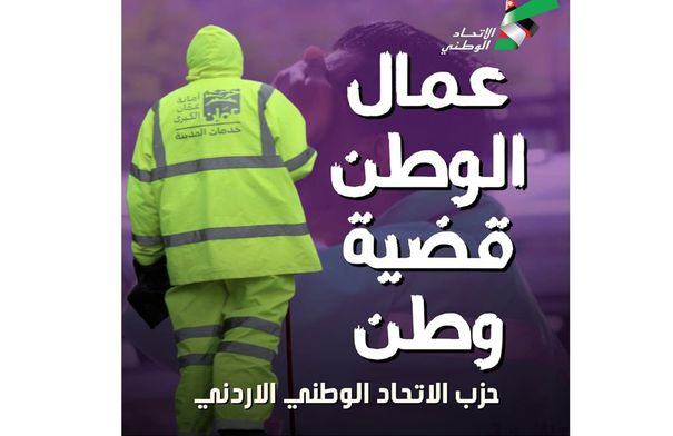 انطلاقًا من الثوابت الوطنية التي يرتكز عليها حزب الاتحاد الوطني الأردني، والمبنية على مبادئ العدالة الاجتماعية، وصون كرامة المواطن والعامل، ومتابعةً للتطورات المتعلقة بملفي عمال المياومة في البلديات والمحالين قسرًا إلى التقاعد المبكر من موظفي أمانة عمّان الكبرى، تؤكد الأمانة العامة ما يلي:
