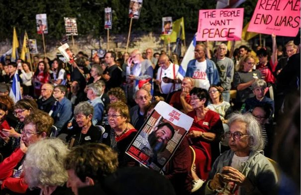 وتابع “هكذا نحن هنا، وننتظر منكم إعلان توقيع الاتفاق، وإعادة الجميع. وإلى أن يحدث ذلك، لن نعود إلى ديارنا. سنكون هنا في عيد العرش وسنبقى في السوكا (مظلات) حتى تعلنوا أن الأمر قد انتهى، وأنهم يعودون”.