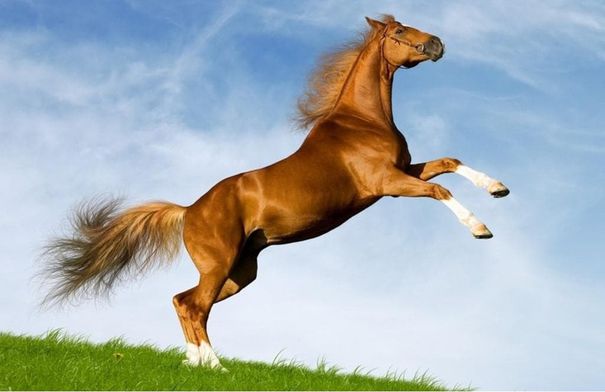 حصان يطلب من حصان آخر أن يساعده في نزع اللجام عن فمه حتى يتمكن من اكل العشب