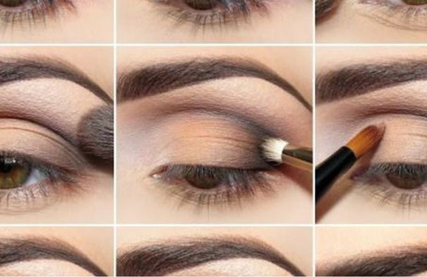 مكياج العينين: تمشيط الحواجب، وضع الآيشادو، محدد العين، والماسكارا.