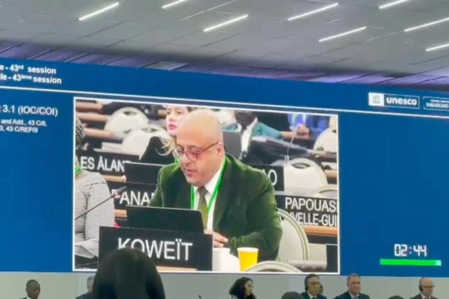 شارك معهد الكويت للأبحاث العلمية، أمس، في اجتماعات لجنة العلوم الطبيعية ولجنة الأوقيانوغرافيا الحكومية الدولية، ضمن اجتماعات أعمال الدورة ال 43 للمؤتمر العام لمنظمة الأمم المتحدة للتربية والعلم والثقافة «يونسكو» المنعقدة في مدينة سمرقند بأوزبكستان، وتستمر إلى 13 نوفمبر الجاري.