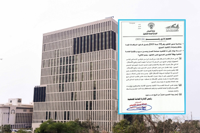 وجاء في نص التعميم الذي حصلت «» على نسخة منه، أنه “بمناسبة صدور القانون رقم (59) لسنة (2025 بتعديل قانون المرافعات فيما يتعلق بإجراءات التنفيذ الجبري، لذا وبناء على ما تقتضيه مصلحة العمل وحسن سيره بالإدارة العامة للتنفيذ ووفقاً للتفسير الصحيح لنص القانون، فإنه «في حال إقامة إشكال أول من قبل أي من طرفي التداعي، تبقى الحجوزات وأوامر المنع من السفر، إذا تم أيا منهما قبل رفع الاشكال».