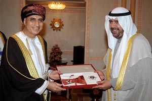 منح العاهل العماني السلطان قابوس بن سعيد امس وسام عمان المدني من الدرجة الثانية لرئيس المجلس الاولمبي الاسيوي الشيخ احمد الفهد وقام بتسليم الوسام للشيخ احمد الفهد امس نائب رئ
