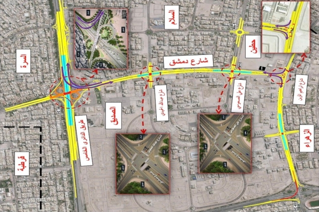 ويأتي هذا الافتتاح لحركة المرور من الدائري الخامس للقادمين من السالمية إلى شارع دمشق، ومن شارع دمشق إلى الدائري الخامس باتجاه السالمية، وكذلك لمستخدمي مخرج السرة المقابل لطريق الدائري الخامس والمتجه إلى شارع دمشق باتجاه جنوب السرة، وذلك يوم الأحد الساعة 12:00 ليلاً فجر الاثنين الموافق 20/10/2025.
