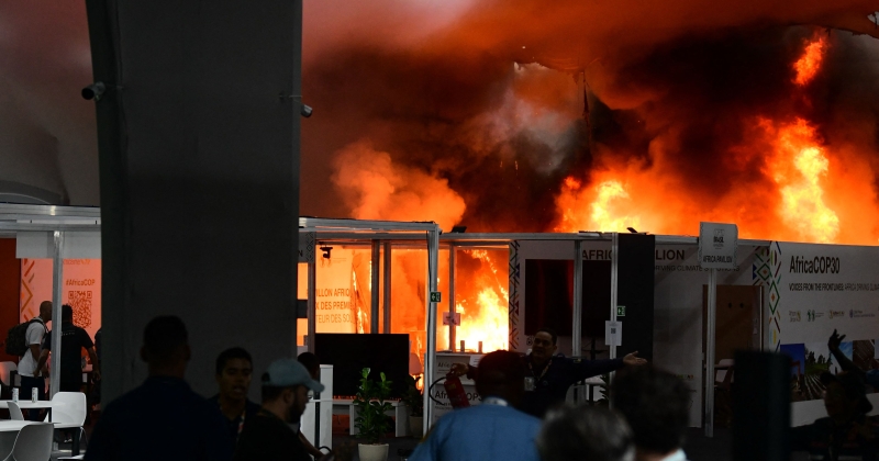 وشبّ الحريق الكبير في منطقة الأجنحة الوطنية، وانتشر الدخان داخل وخارج المكان الذي يستضيف مؤتمر الأمم المتحدة للمناخ في المدينة البرازيلية الواقعة في منطقة الأمازون، ما أثار حالة من الذعر، بحسب مراسلي وكالة فرانس برس.